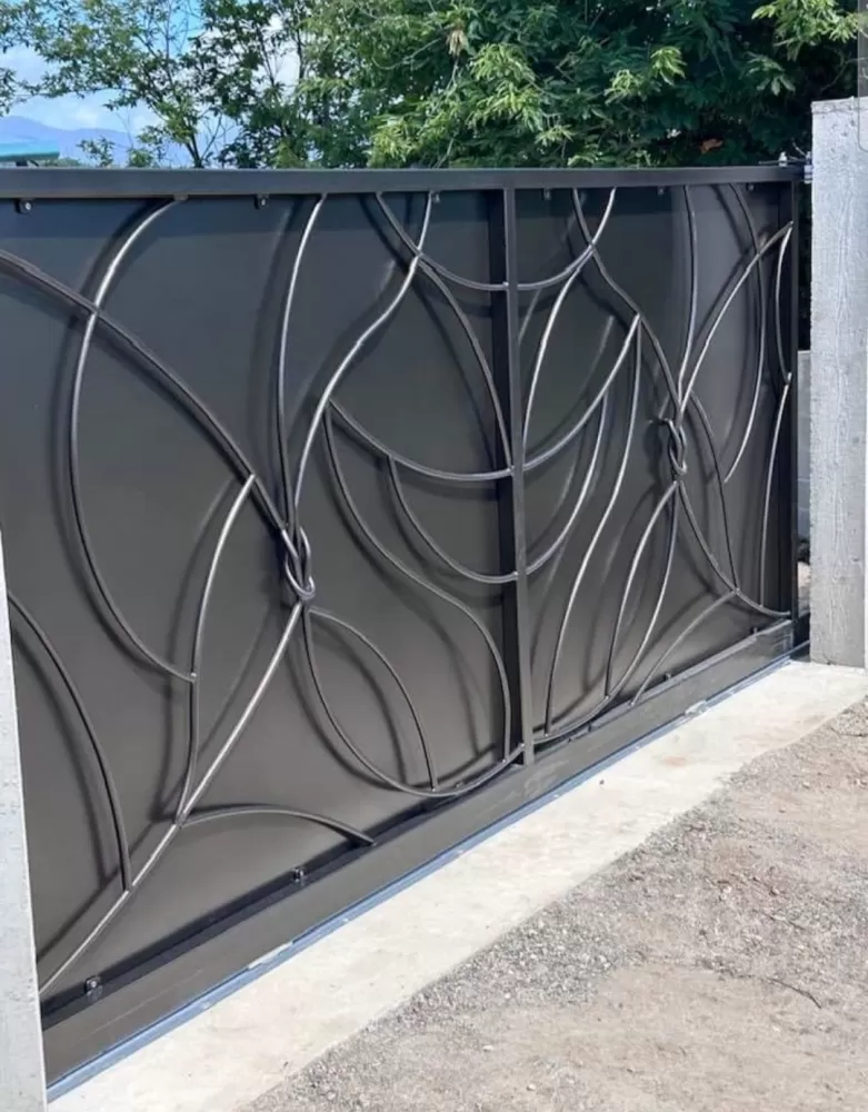 Thermolaquage sur portail coulissant réalisé par STM, après un grenaillage Sa2.5 nous avons effectué un thermolaquage Bi couche apprêt époxy, finition polyester Bronzo Coarse Texture.