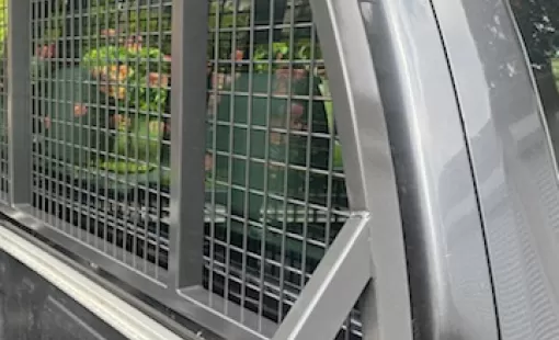 STM à réalisé un Sablage Sa2.5 puis un thermolaquage Tri couche finition noir 2100 sablé revernis sur une grille arrières d'un 4x4 Nissan, en Corse…